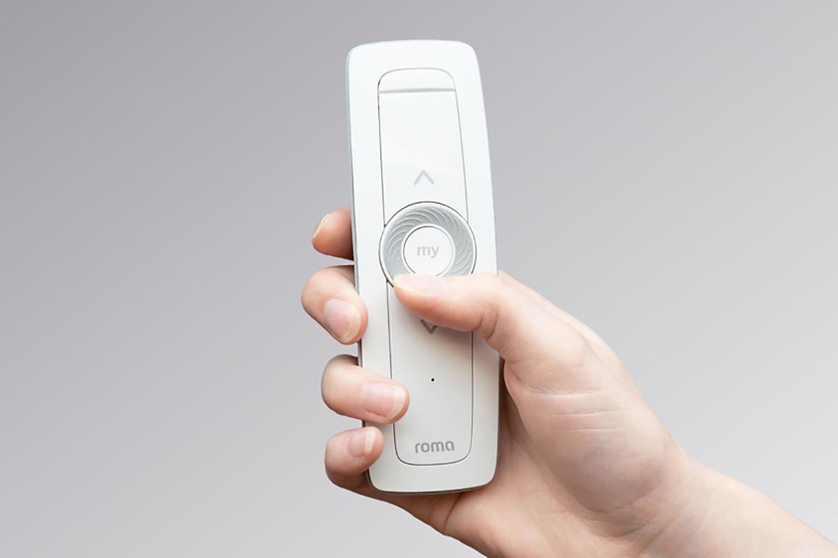 Fernbedienungen erleichtern bereits in vielen Bereichen den Alltag. Warum also nicht auch beim Sonnenschutz? Per Funksteuerung können Sie die Lamellen der ROMA Raffstorensysteme um bis zu 180° drehen und so bequem den Lichteinfall steuern – von jeder Stelle im Haus. So steigern Sie mit dem Daumen Ihre Wohnqualität.