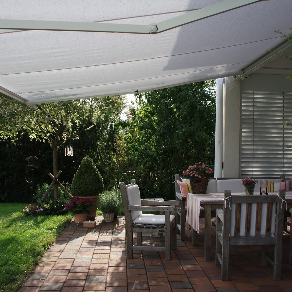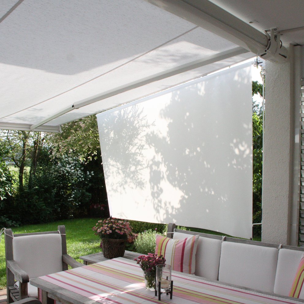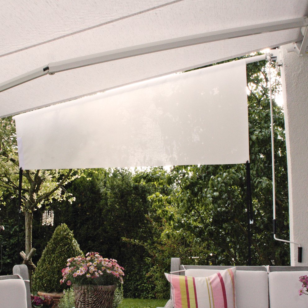 Mit dem SKUGGI® erhalten Sie einen praktischen seitlichen Schutz vor Sonne und unerwünschten Einblicken. Das System wird per Kurbel ausgefahren und verhindert effektiv das Eindringen schräger Sonnenstrahlen. Je nach Einbauhöhe kann das Tuch bis zu 300 cm weit herausgezogen werden; die Bespannung bietet dabei eine maximale Auszugslänge von 250 cm.