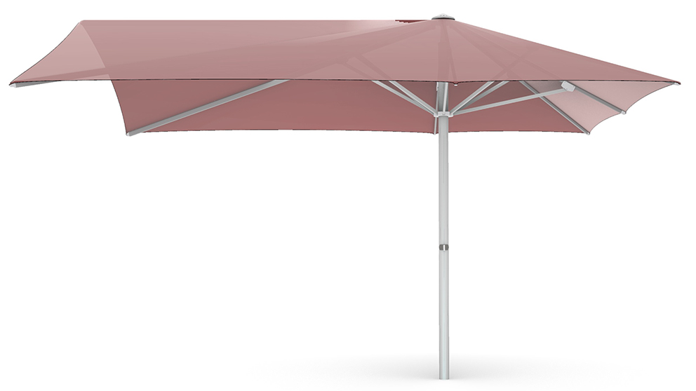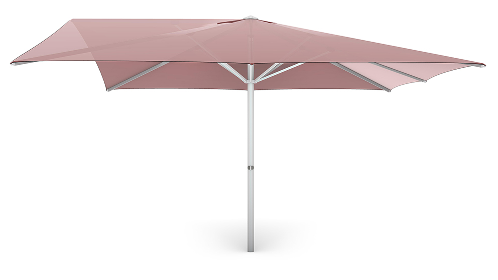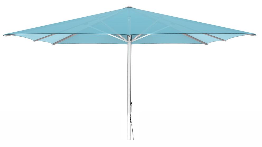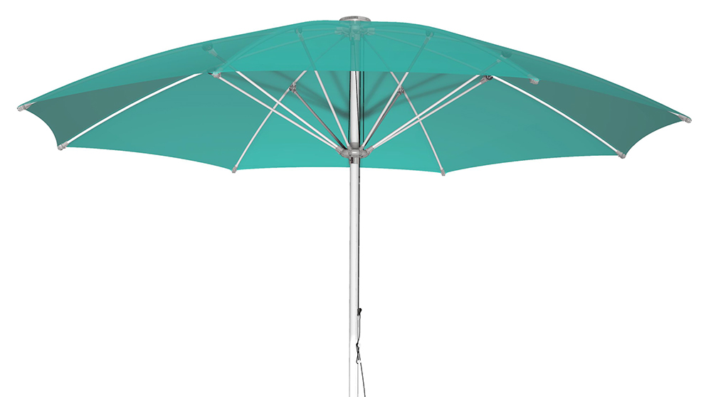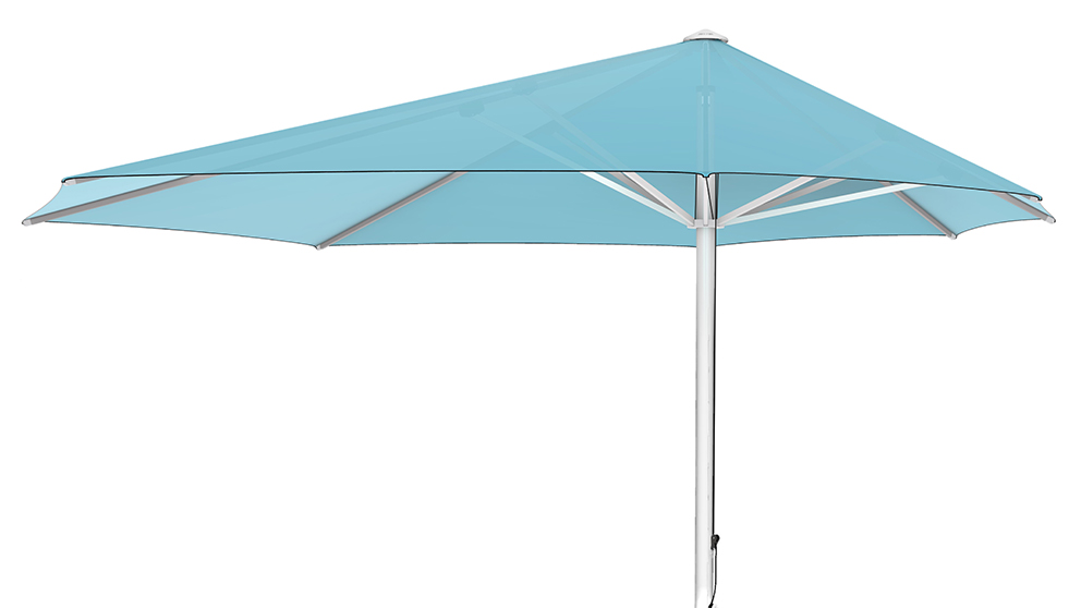 Mit dem patentierten, selbstöffnenden Kurbelsystem lässt sich der Schirm mühelos öffnen und schließen. In der exzentrischen Variante steht das Standrohr nicht im Laufweg, wodurch eine durchgängige, geschützte Fläche entsteht – ideal, um Gästen bei Sonne, Regen und Wind ein Höchstmaß an Wohlbefinden zu bieten.