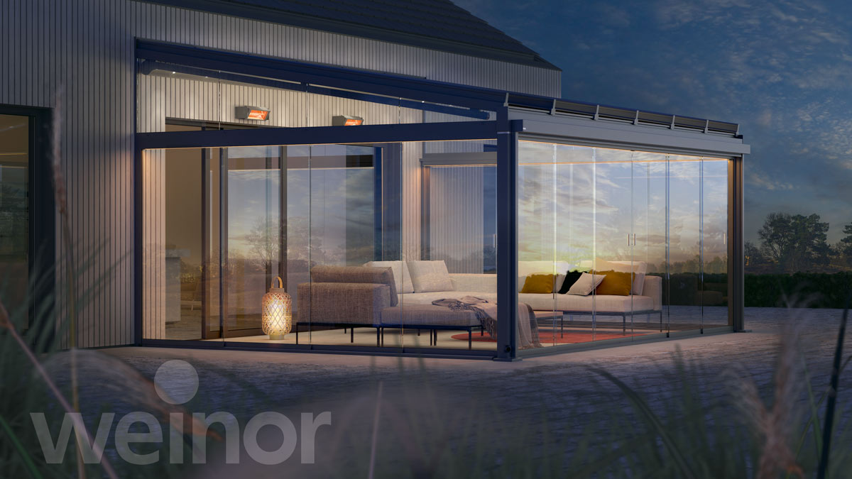 Mit einer weinor Glasoase® kann die Terrassensaison bereits im Frühjahr beginnen und sich bis in den Herbst hineinziehen. Zusätzliches Zubehör wie LED-Beleuchtungen oder Elektro-Heizstrahler sorgen für Wärme und Ambiente, wenn die Tage noch oder schon wieder kürzer sind. Und wenn es draußen richtig sommerlich wird, lässt sich die gläserne Front komplett beiseiteschieben.